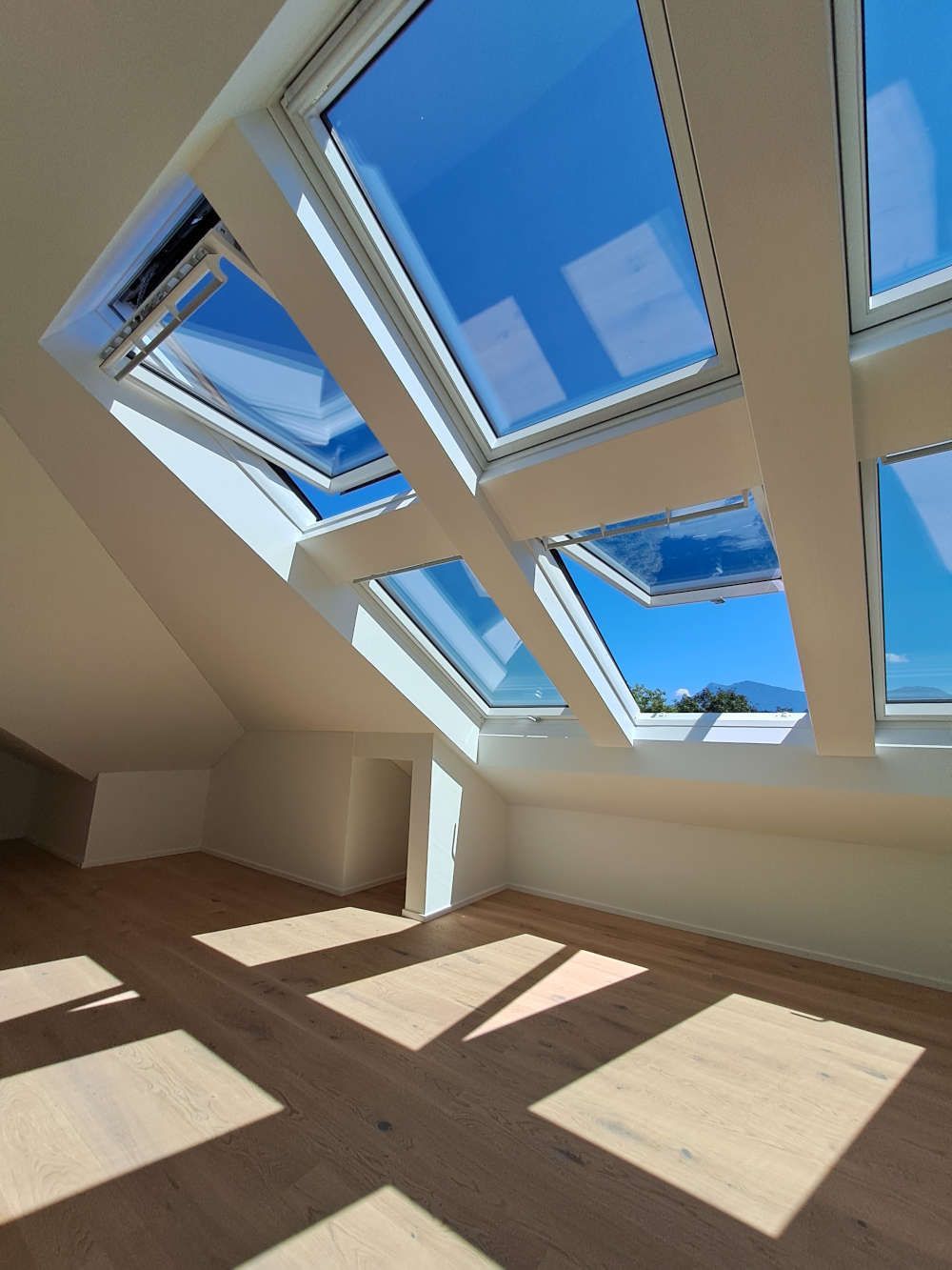 Unsere hochwertigen Fensterlösungen bieten Ihnen massgeschneiderte Lösungen rund um Licht, Luft und Wohnqualität unter dem Dach. Ob Neubau oder Sanierung – wir unterstützen Sie von der Planung bis zur Umsetzung mit Erfahrung, Präzision und aktuellem Know-how. Profitieren Sie von energieeffizienten, stilvollen und langlebigen Produkten.