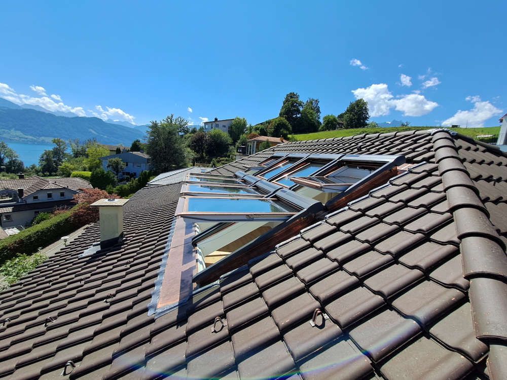 Für den fachgerechten Einbau steht Ihnen ein motiviertes Team aus verschiedenen handwerklichen Bereichen zur Verfügung. Dank unseres breiten Know-how rund ums Dach und die Gebäudehülle realisieren wir Sanierungen und Einbauten für alle Dachformen und Eindeckungen. Die massgefertigten Innenfutter aus Holz werden in unserer Zimmerei präzise hergestellt, lackiert und vor Ort professionell montiert.